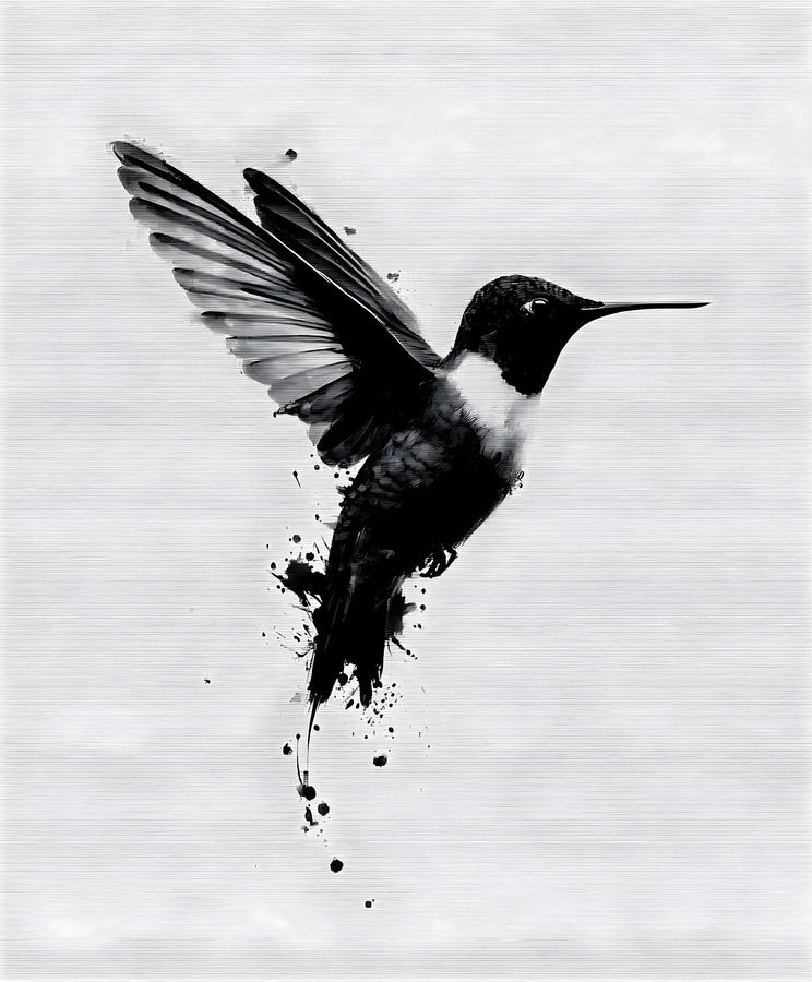 Inkflight – Monochrome Hummingbird Print embodies movement and grace in pure simplicity. Rendered in expressive ink tones, this modern composition c...[+]