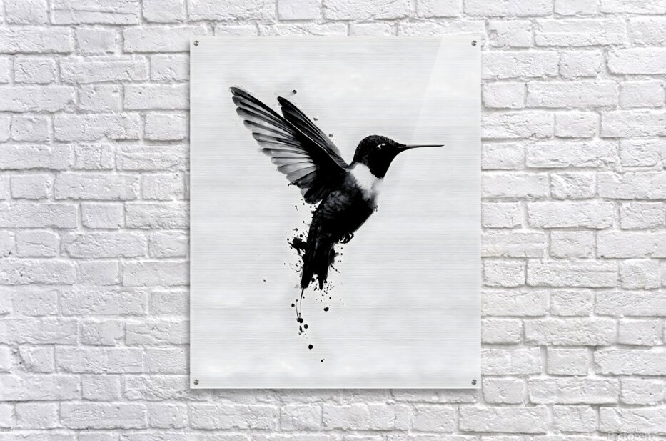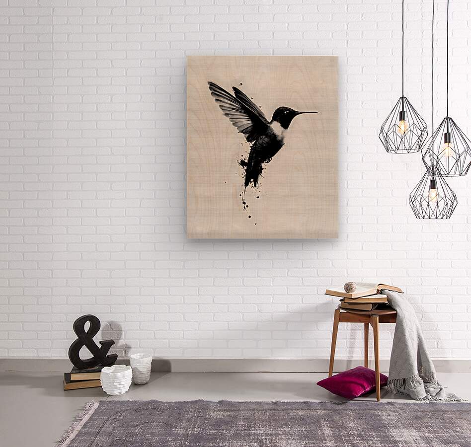 Inkflight – Monochrome Hummingbird Print  Wood print