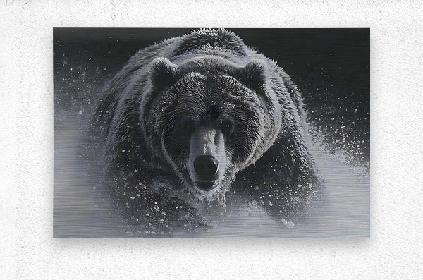 Thunder in White – Bear in the Snow Print captures an unstoppable burst of nature’s strength — a grizzly bear charging through snow and storm. T...[+]