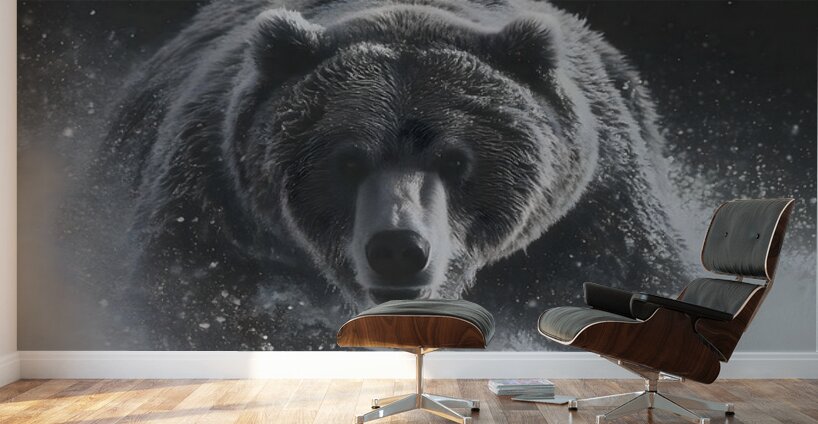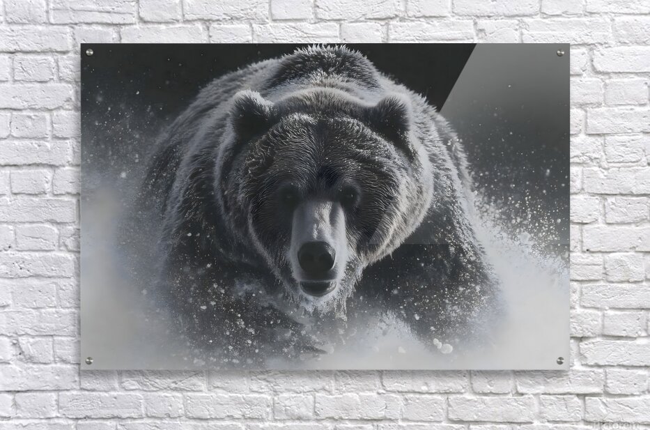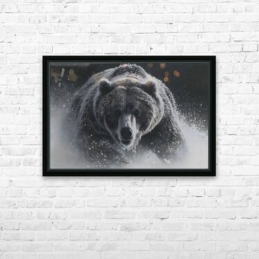 Thunder in White – Bear in the Snow Print captures an unstoppable burst of nature’s strength — a grizzly bear charging through snow and storm. T...[+]