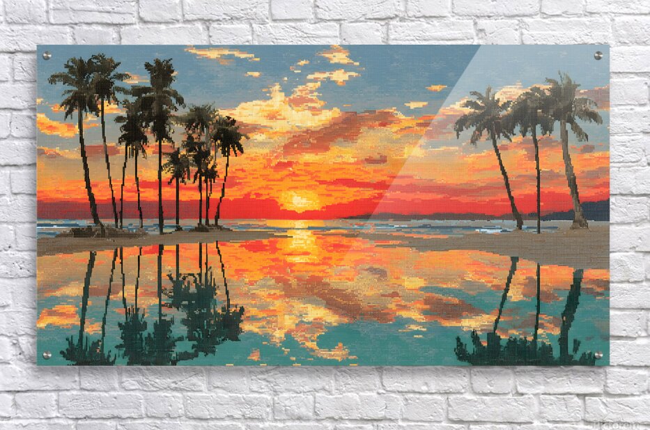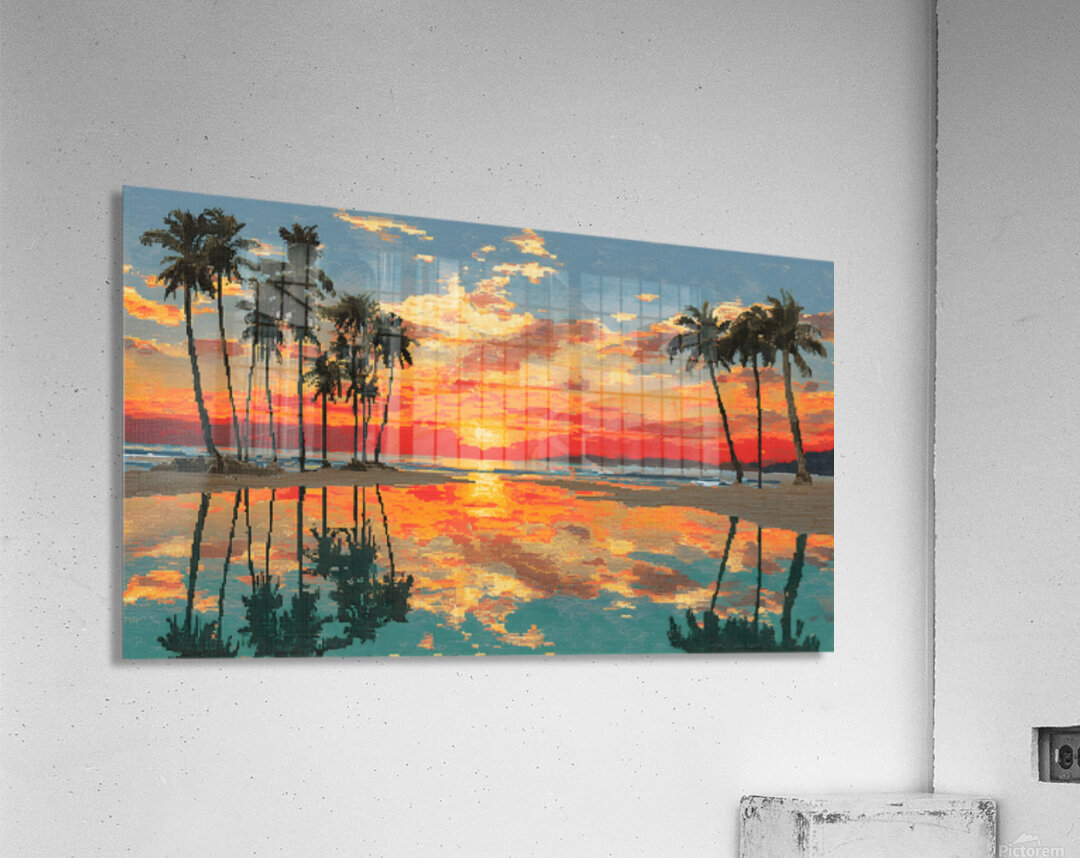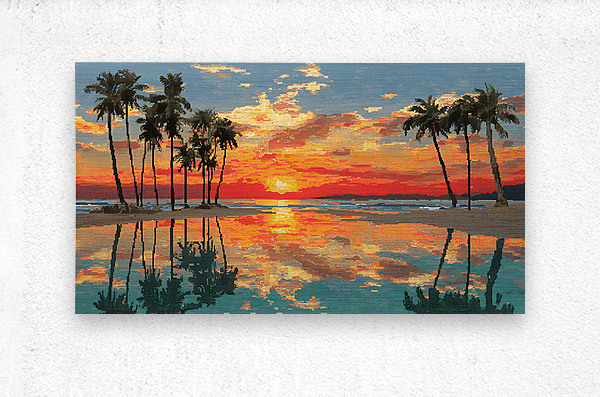 Firewater – Tropical Sunset Reflection Print captures the molten glow of a tropical dusk where palm trees and skies meet in mirrored perfection. Viv...[+]