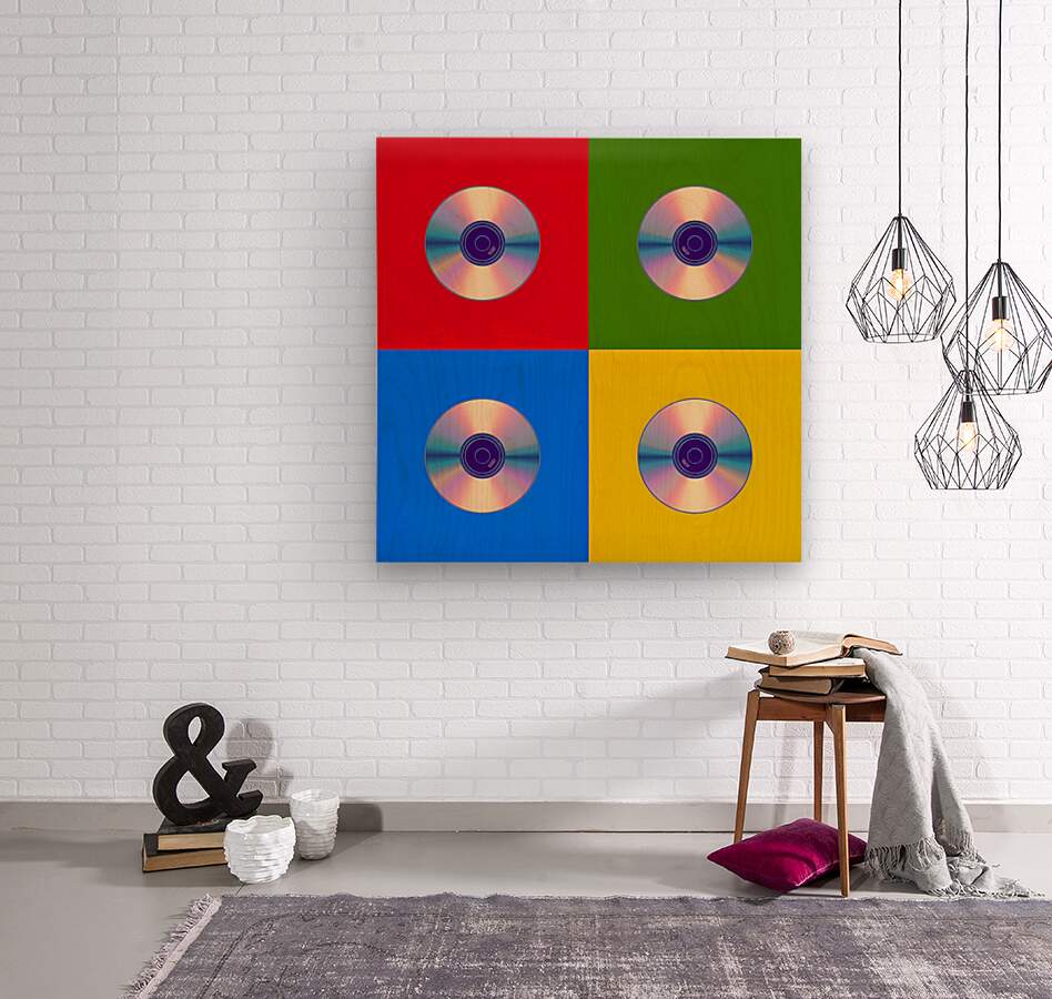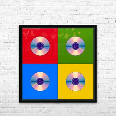 Permanent Mix – Compact Disc Pop Art Print throws four shining CDs onto fields of solid color, turning a once-futuristic music format into clean, pu...[+]
