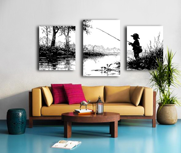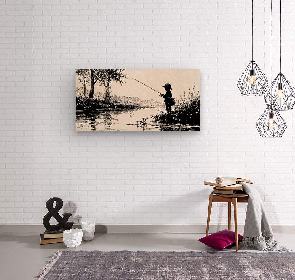 Boy Fishing – Vintage Fishing Print looks like it was torn from the pages of a beloved old storybook. A kid in a floppy hat stands at the water’s edge, line arcing out over a quiet river while trees, grasses, and reflections are rendered in crisp black ink. No color, no noise—just a boy, a simple rod, and a slow-moving stretch of water. It’s pure nostalgia for slow summers, hand-me-down gear, and the first fish you ever pulled from a muddy bank. This artwork is available as a giclée canvas print, premium acrylic print, smooth white metal or brushed aluminum piece, and high-definition sublimatable metal panel that preserves every line and shadow. You can also choose a peel-and-stick mural for larger storybook walls, framed editions for instant hanging, fine art paper prints with a classic illustration feel, warm wood prints, multi-panel layouts, or puzzle prints that turn this quiet moment into a hands-on experience. Curated by Savage Art Prints.