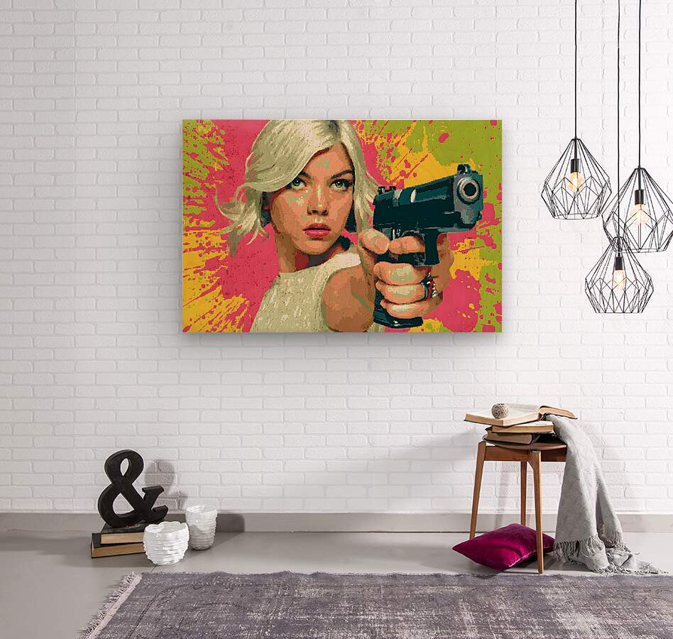 Neon Trigger – Pop Noir Print feels like a movie freeze-frame with the saturation turned all the way up. A platinum-haired woman aims straight out of the frame, jaw set and eyes locked, while a blast of pink, yellow, and green splatter explodes behind her. It’s pulp energy meets pop palette—more graphic novel panel than real-world moment—perfect for game rooms, home theaters, and anyone who grew up on action flicks and grindhouse posters. This artwork is available as a giclée canvas print, premium acrylic print, smooth white metal or brushed aluminum piece, and high-definition sublimatable metal that keeps the neon tones loud and the details sharp. You can also choose a peel-and-stick mural for full-wall cinema impact, framed wall art for instant pop-noir attitude, fine art paper prints for a softer, poster-like finish, wood prints that add warmth to the chaos, multi-panel presentations that stretch the blast across wider spaces, or puzzle prints for those who want to piece their anti-heroine together frame by frame. Curated by Savage Art Prints.