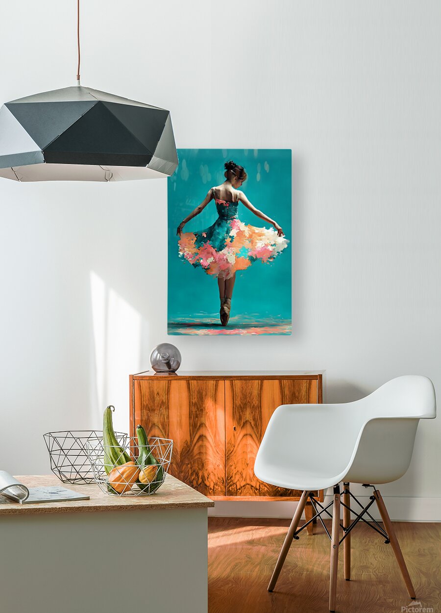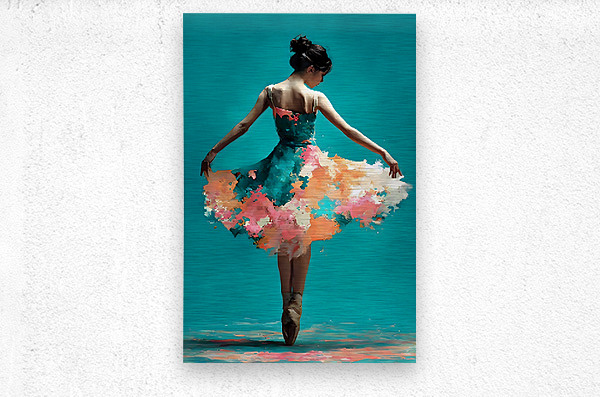 Blooming Pirouette – Ballerina Print catches a dancer mid-turn, arms extended as her dress dissolves into clouds of coral, peach, and teal paint. The turquoise backdrop keeps the composition clean while the lower hem of the skirt blows apart into splashes that feel half-fabric, half-flower. It’s a piece about balance and letting go at the same time—graceful, modern, and emotionally light. This artwork is available as a giclée canvas print, premium acrylic print, smooth white metal or brushed aluminum piece, and high-definition sublimatable metal that captures both the soft skin tones and the sharp paint textures. You can also choose a peel-and-stick mural to transform a studio or bedroom wall, framed wall art for ready-to-hang elegance, fine art paper prints for a classic ballet-poster feel, wood prints that add warmth underfoot, multi-panel presentations that extend the motion across the room, or puzzle prints for dancers who want to watch their pirouette bloom piece by piece. Curated by Savage Art Prints.