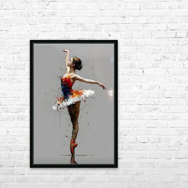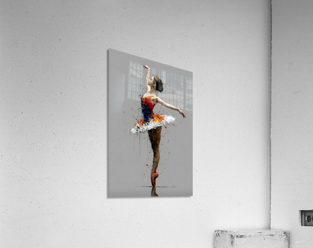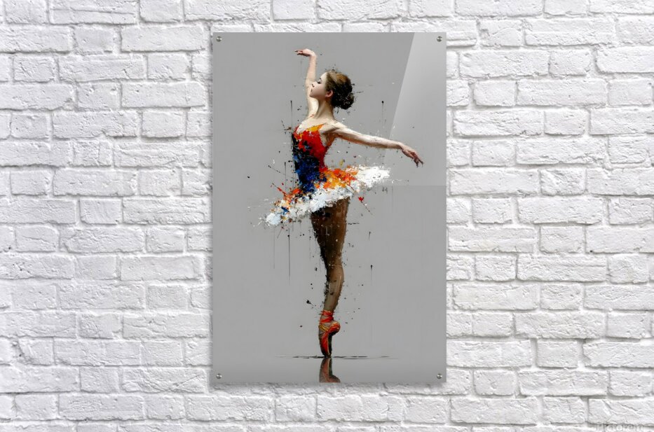 Painted Arabesque – Ballerina Print tracks a single dancer stretched into a long, clean line against a quiet grey field. Her tutu bursts into shards of white, red, and blue, rendered in thick palette-knife strokes that drip and splinter away from the form. The contrast between the poised, controlled pose and the fractured paint gives the piece a charged, modern feel—elegant but unapologetically raw. This artwork is available as a giclée canvas print, premium acrylic print, smooth white metal or brushed aluminum piece, and high-definition sublimatable metal that emphasizes both the crisp figure and the textured strokes. You can also choose a peel-and-stick mural for full-height studio drama, framed wall art for polished interiors, fine art paper prints for a classic dance-gallery look, warm wood prints that soften the industrial grey, multi-panel presentations that stretch the arabesque across wider spaces, or puzzle prints for those who want to build the performance one movement at a time. Curated by Savage Art Prints.