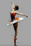 Painted Arabesque – Ballerina Print tracks a single dancer stretched into a long, clean line against a quiet grey field. Her tutu bursts into shards...[+]