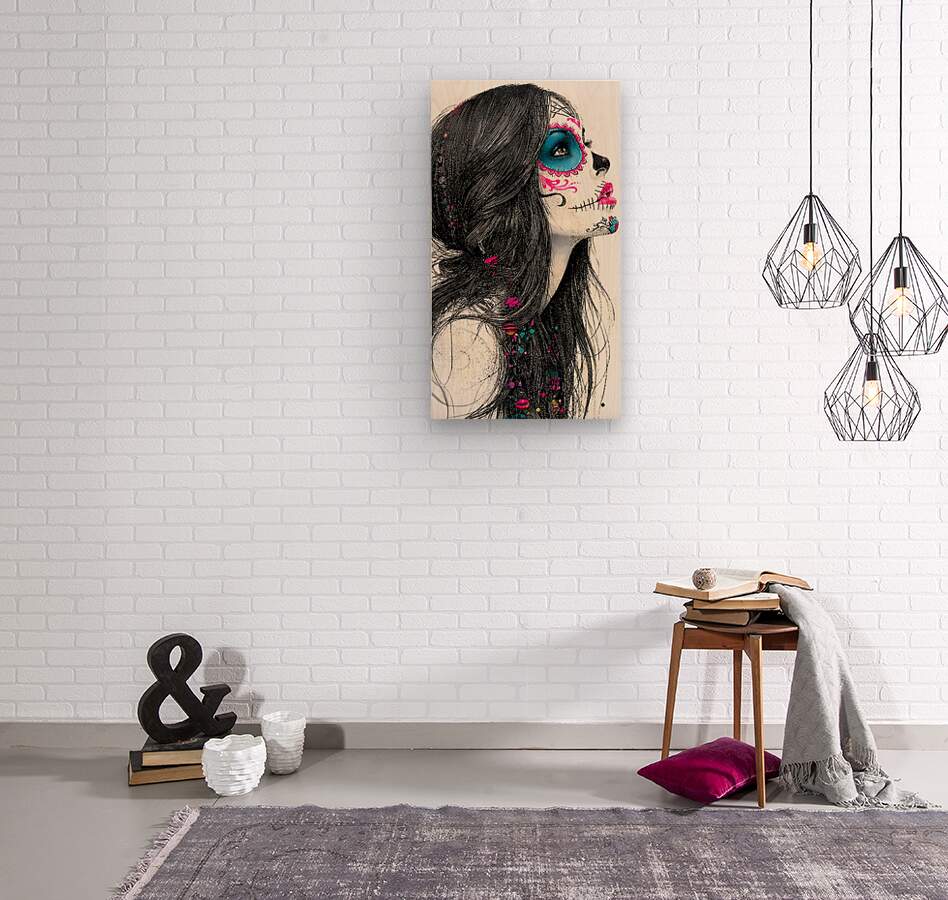 SUSURROS DEL CIELO – Whispers of the Sky print turns a Dia de los Muertos portrait into a delicate, almost celestial drawing. Fine ink lines weave through her flowing hair while teal and magenta sugar-skull flourishes glow like stardust. It feels part tattoo flash, part love letter to those who’ve gone before—soft, intricate, and quietly powerful. Available as a giclée canvas print, premium acrylic print, smooth white or brushed aluminum, high-definition sublimatable metal, peel-and-stick mural, framed wall art, fine art paper print, wood print, panel piece, or puzzle print, this piece fits equally well in creative studios, bedrooms, or gallery walls. Curated by Savage Art Prints.