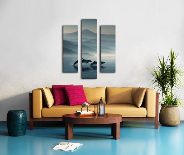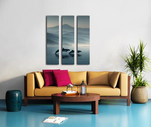 Misty Dolphins – Serene Ocean Leap Print Canvas print