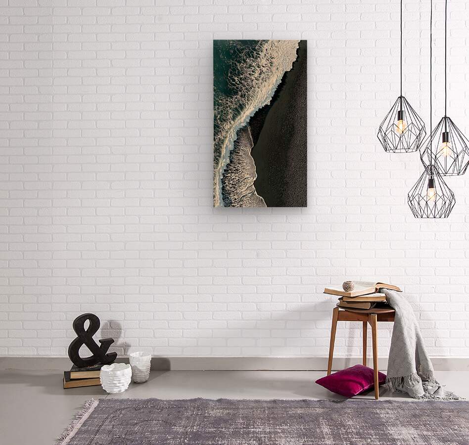 Black Sand Surge – Dramatic Aerial Beach Print Wood print