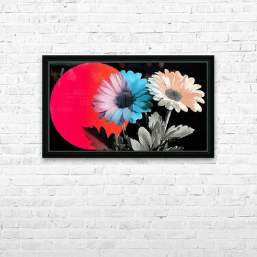 Neon Bloom Eclipse – Retro Daisy Pop Art Print Picture Frame Printing