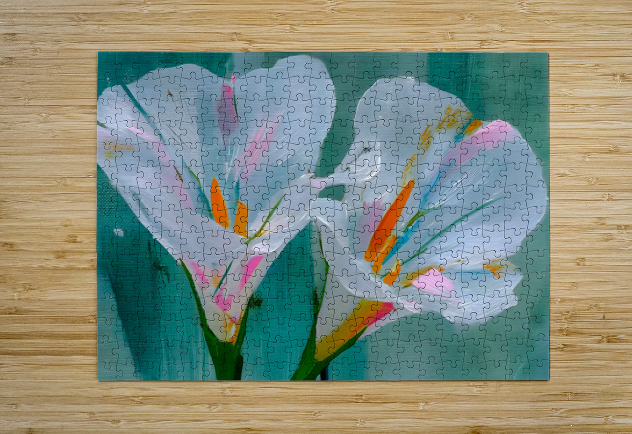 Twin Irises – Minimalist White Iris Flower Art Print Savage Art Prints Puzzle
