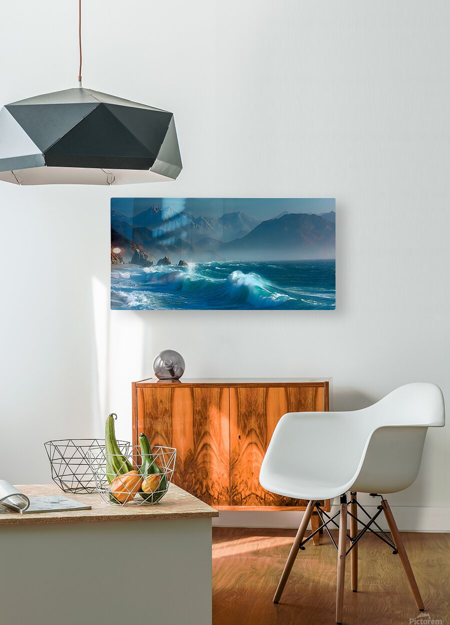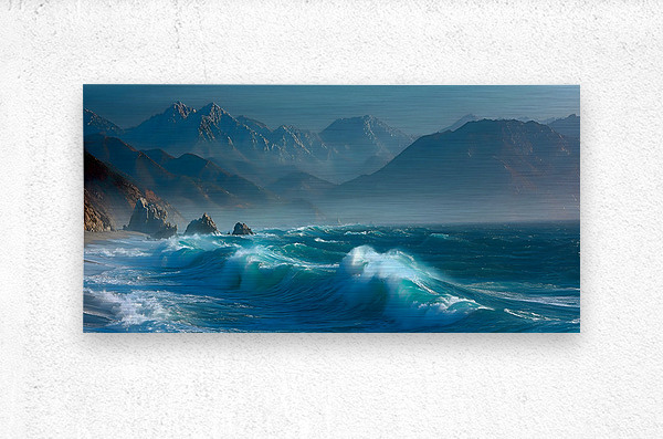 Sapphire Break – Crashing Ocean Wave Art Print  Wood print