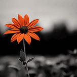 Solitary Flame glows with quiet defiance — a single orange daisy illuminated against blackness. The composition conveys individuality, strength, and...[+]