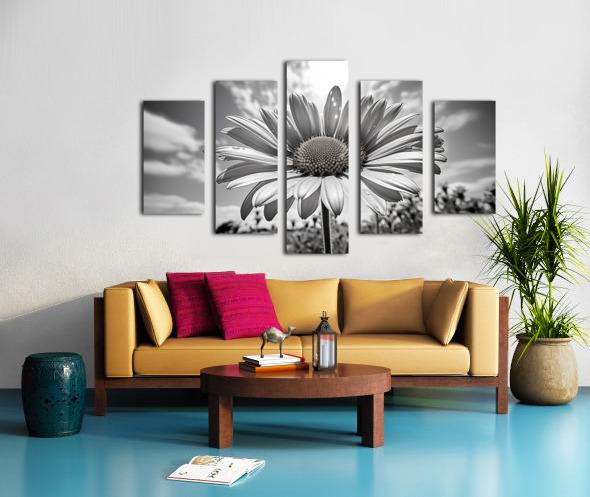 Summer’s Echo – Black and White Sunflower Field Print Canvas print