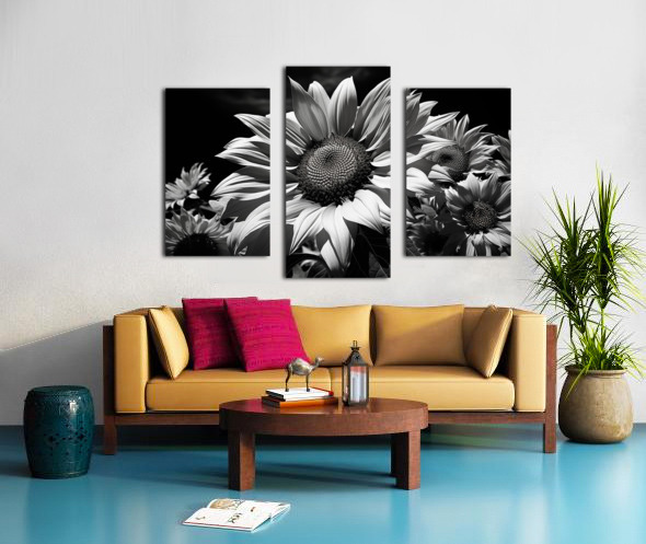 Golden Accent – Part-Color Sunflower Study Print Canvas print