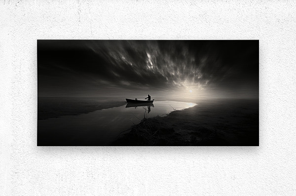 The Fisherman’s Prayer captures a lone boat adrift beneath a vast sky — a timeless symbol of faith, solitude, and survival. The monochrome palette...[+]