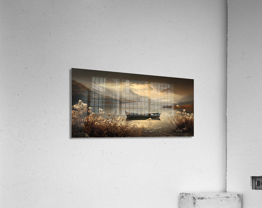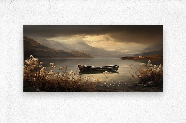 Silent Passage – Golden Boat Landscape Print  Wood print