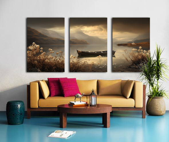 Silent Passage glows with the stillness of early evening — a lone boat rests on golden water, surrounded by distant mist. This poetic image evokes solitude, reflection, and peace. Perfect for modern or rustic spaces, it creates a meditative focal point that draws the viewer in. Choose from multiple finishes: canvas for soft atmosphere, HD metal for detail, acrylic for shine and depth, or framed fine-art paper for timeless calm. Printed with archival inks on museum-grade materials. Curated by Savage Art Prints.