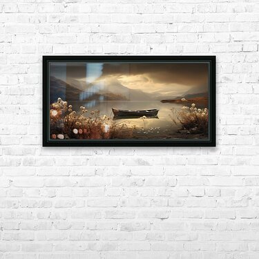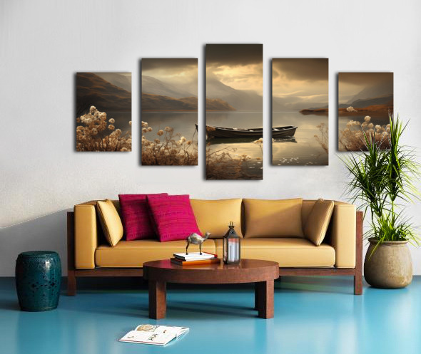 Silent Passage – Golden Boat Landscape Print Picture Frame Printing