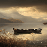Silent Passage glows with the stillness of early evening — a lone boat rests on golden water, surrounded by distant mist. This poetic image evokes s...[+]
