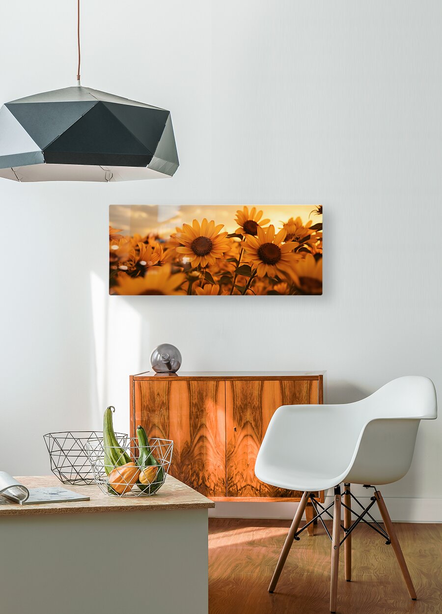 Golden Haze – Radiant Sunflower Morning Print  Wood print