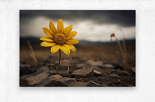 Golden Resolve radiates quiet determination — a sunflower blooming strong against the muted tones of a weathered landscape. Sepia light softens the ...[+]