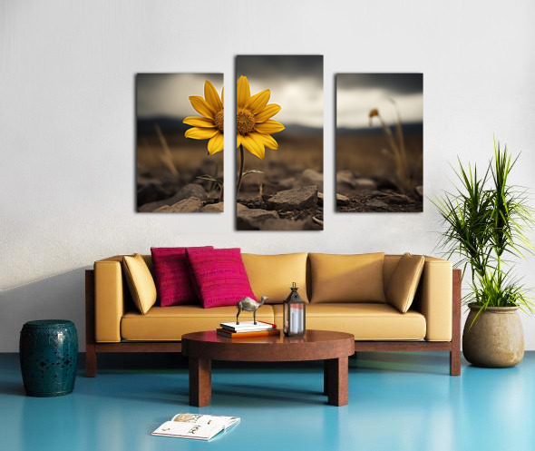 Golden Resolve radiates quiet determination — a sunflower blooming strong against the muted tones of a weathered landscape. Sepia light softens the field into a dreamlike haze, bridging nostalgia and strength. Ideal for farmhouse, rustic, or modern transitional spaces. Choose canvas for earthy texture, HD metal for rich contrast, acrylic for luminous depth, or framed fine-art paper for timeless elegance. Printed with archival inks on museum-quality substrates. Curated by Savage Art Prints.