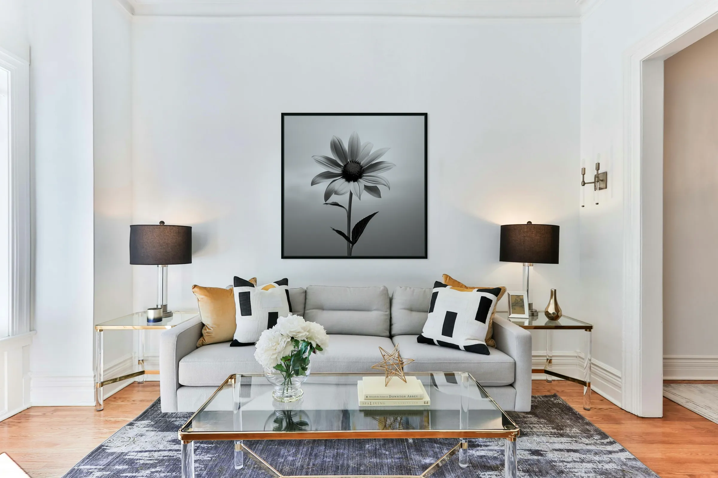 Solitary Grace – Monochrome Sunflower Portrait Print Picture Frame Printing