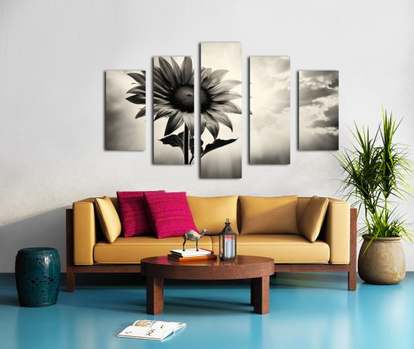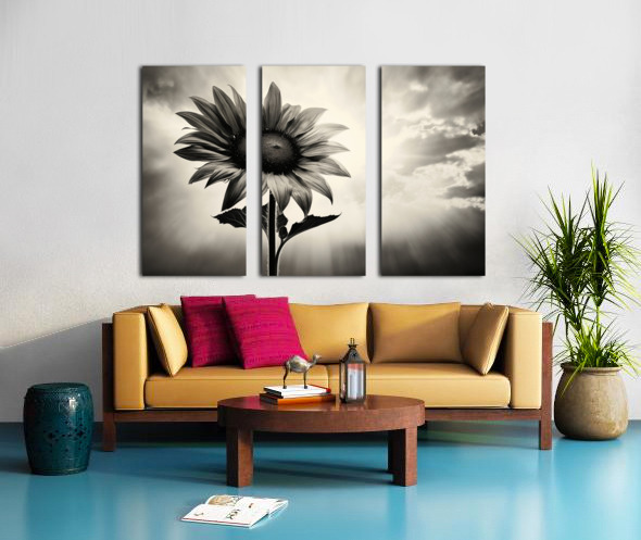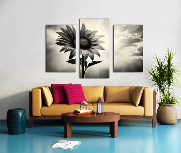 Standing Tall – Sunflower Monochrome Landscape Print Canvas print