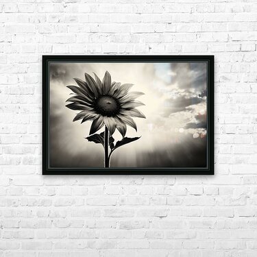 Standing Tall – Sunflower Monochrome Landscape Print Picture Frame Printing