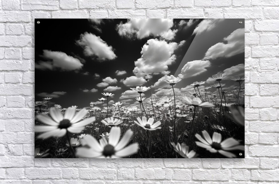 Whispers of the Sky – Monochrome Daisy Field Print Picture Frame Printing