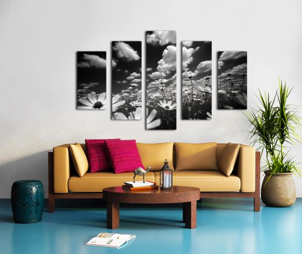 Whispers of the Sky – Monochrome Daisy Field Print Canvas print