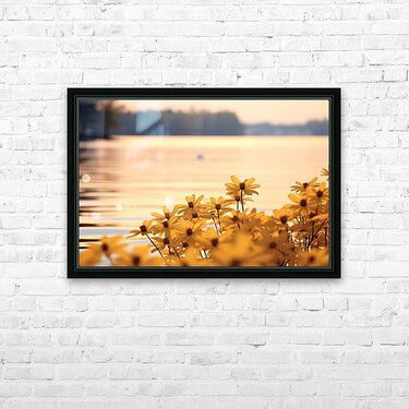Golden Hour Bloom – Warm Sepia Sunflower Landscape Print Picture Frame Printing