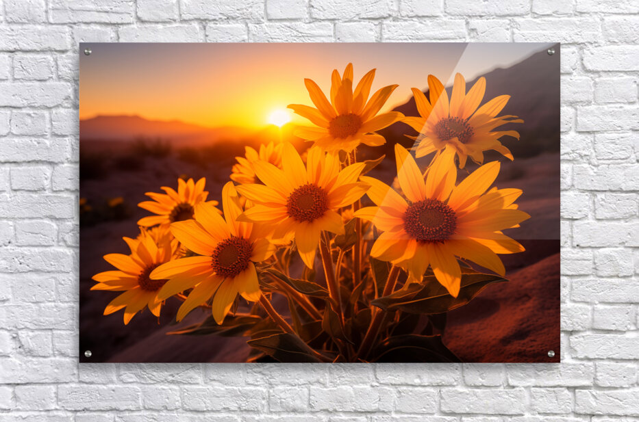 Sunset Sunflowers – Golden Hour Botanical Art Print Picture Frame Printing
