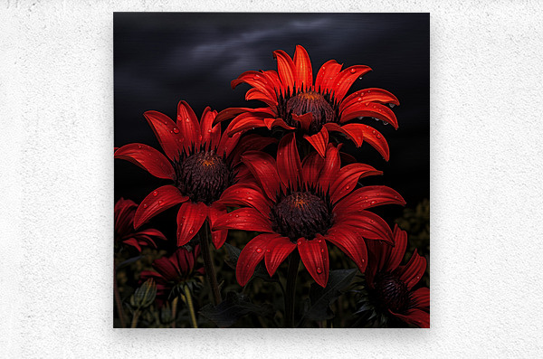 “Crimson Daisies” is unapologetically bold—ruby petals burning against a deep night backdrop. The saturated color becomes an instant focal point...[+]