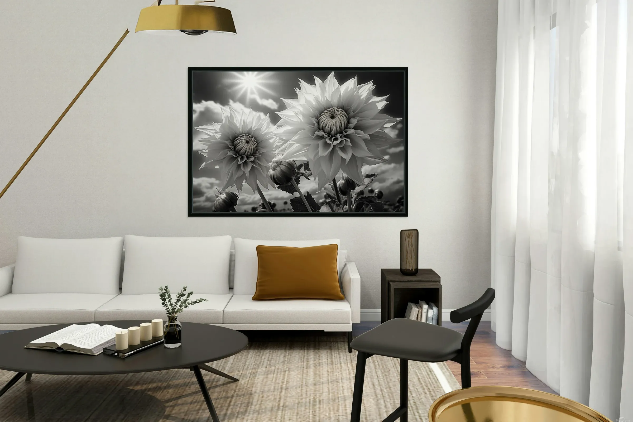 Silver Petals – Black & White Daisy Art Print Picture Frame Printing