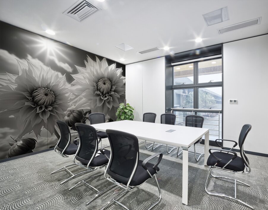 “Silver Petals” strips color to reveal form—crisp white daisies set against rich charcoal tones for a high-contrast, modern look. The monochrome...[+]