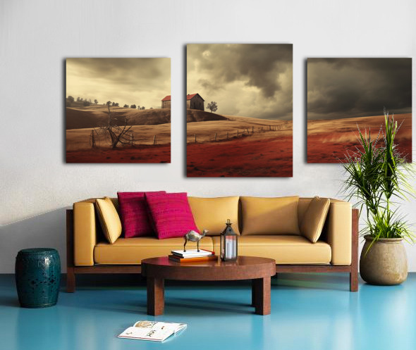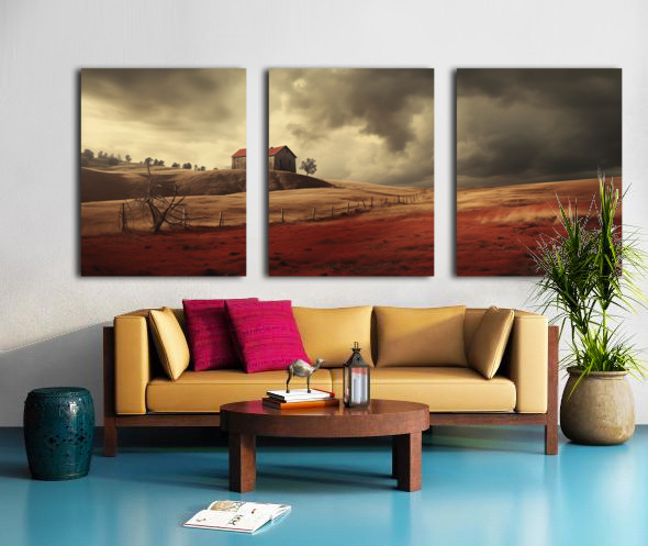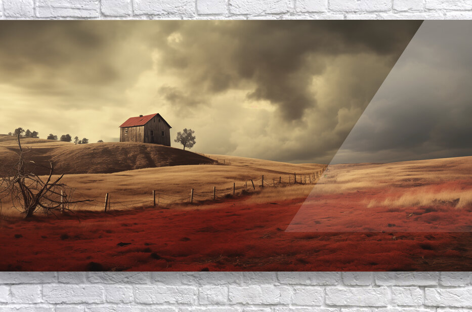 A weathered barn crowns rolling golden hills while thunderheads press low over a ribbon of fence. In the foreground, a crimson field glows like embers—earthy, dramatic, and deeply atmospheric. “Crimson Harvest” brings modern farmhouse warmth and cinematic mood to living rooms, dining spaces, and long hallways, especially in wide, panoramic hangs above sofas or buffets. Choose canvas for a soft, matte gallery texture; HD metal for razor-sharp detail and luminous contrast; acrylic for glass-clear depth and sleek edges; or framed fine-art paper for a refined, low-glare presentation. Printed with museum-grade archival inks on premium substrates and available in custom sizes to fit your wall perfectly. Curated by Savage Art Prints.
