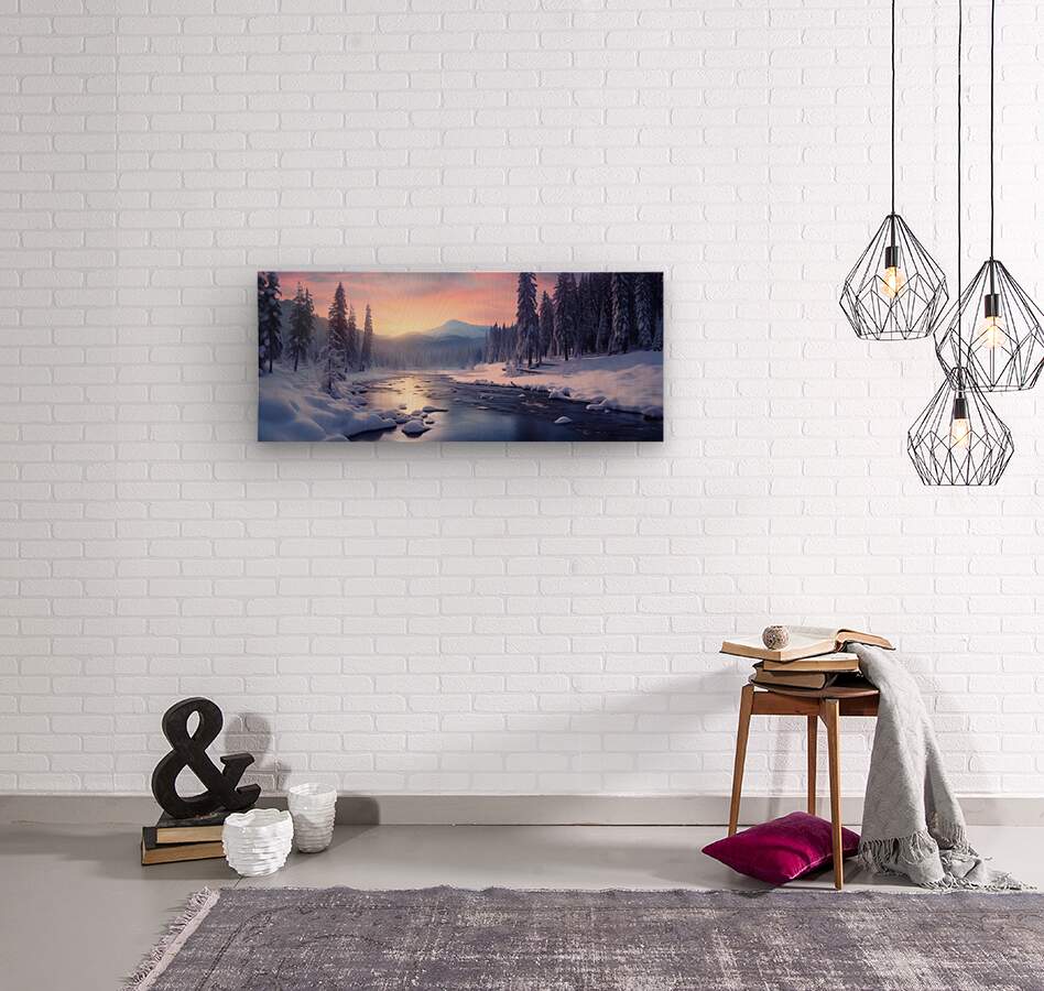 Solstice River – Winter Twilight Landscape Print  Wood print