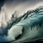 A luminous teal breaker rises and curls beneath stormy light, frozen at the exact second before it thunders down. “Aqua Requiem” captures the dram...[+]