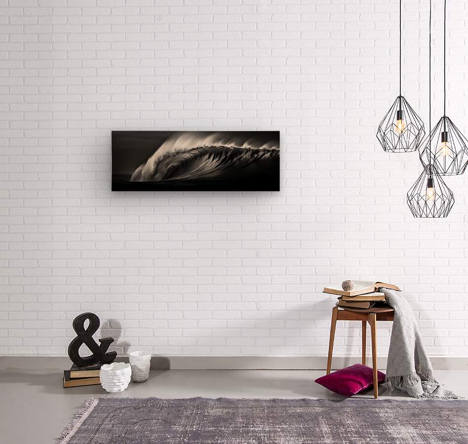 Tempest Curve – Black & White Ocean Wave Print  Wood print