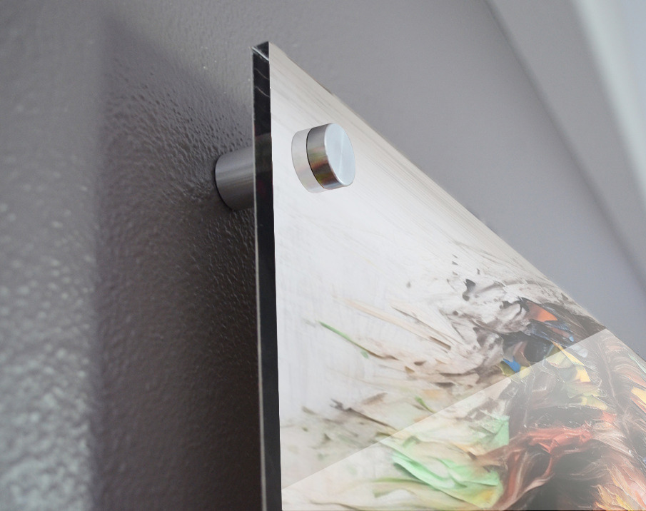 Printed to the edge - Ready to hang - provided with 4 premium polished aluminum stand off ( wall screws and mounting hardware provided )