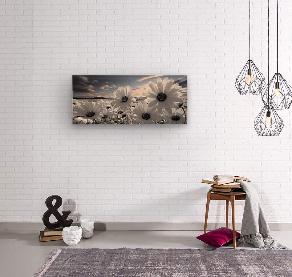 Silent Harmony – Black & White Garden Daisy Art Print  Wood print