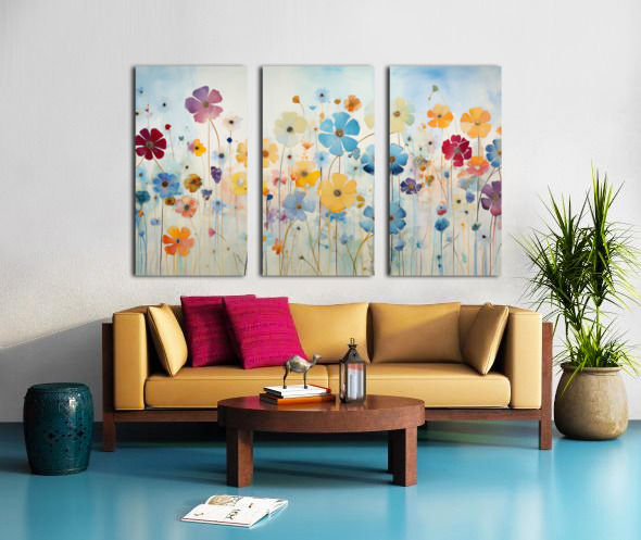 A riot of color—pinks, blues, yellows, and oranges—spills across a soft horizon, delivering instant lift. “Flower Explosion” is joy in motion, perfect for kitchens, nurseries, and lively living rooms that want a bold but friendly statement. Pair with wicker, natural wood, and light textiles for an upbeat, welcoming vibe. Choose canvas for matte richness; HD metal for glossy punch and razor detail; acrylic for glass-clear depth; or framed fine-art paper for a timeless, low-glare finish. Printed with archival inks on premium materials in custom sizes. Curated by Savage Art Prints.