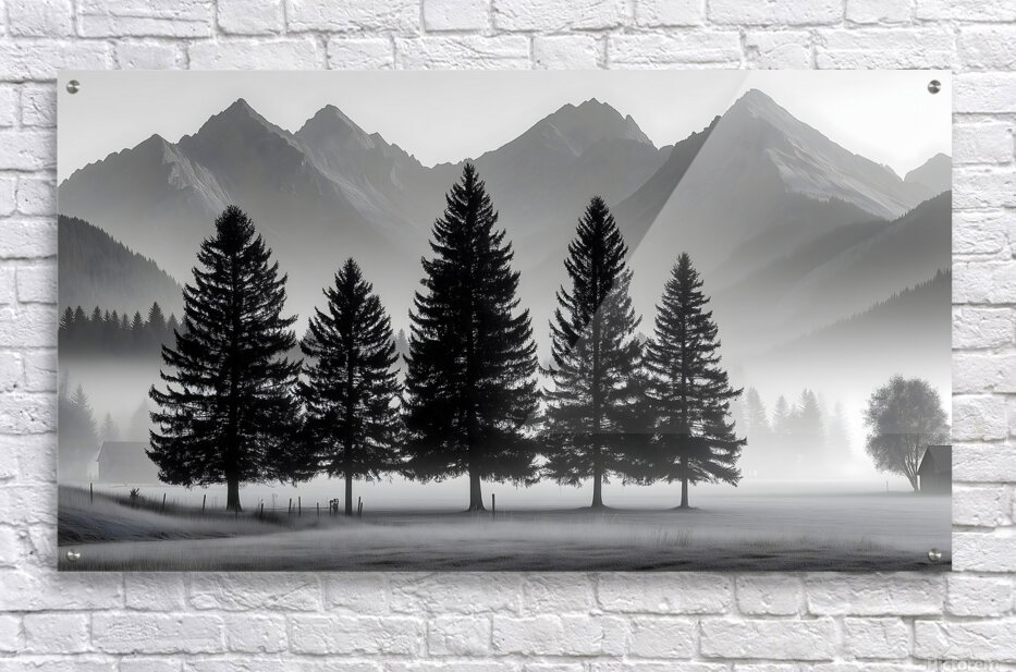 Morning Fog In The Valley - Monochrome Landscape Art Prints Impression sur bois