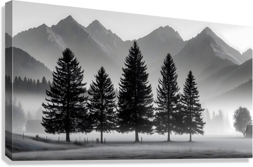 Morning Fog In The Valley - Monochrome Landscape Art Prints Impression sur toile