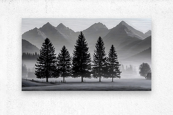 Morning Fog In The Valley - Monochrome Landscape Art Prints  Impression sur bois