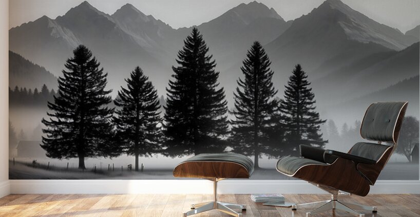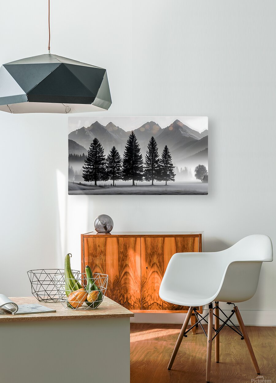 SUR CETTE OEUVRE: MORNING FOG IN THE VALLEY - MONOCHROME LANDSCAPE ART PRINTS