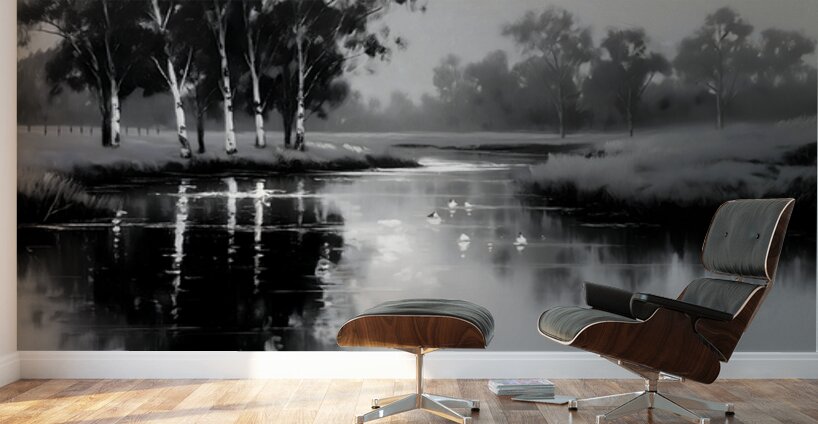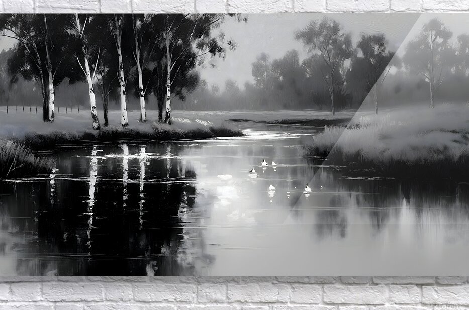 By the Riverbank - Monochrome Landscape Art Prints  Impression sur bois